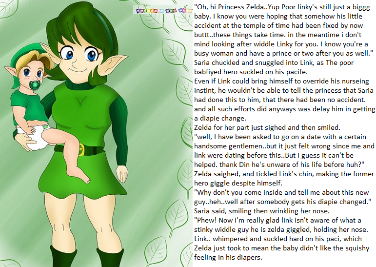Sooo yeah, Saria went and turned link into a little guy who can only whine and poop himself while his new mommy talks about zeldas new man