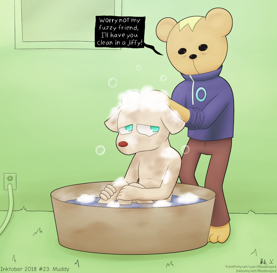 For clarity, Ai is the dog in the tub, and Risukuma is the bear scrubbing his head