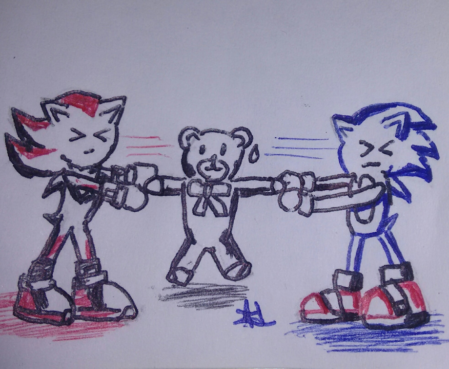 Sonic y shadow pelean por un osito, como resultará esto, descubranlo en el siguiente ... Ya está bien me calmo :v