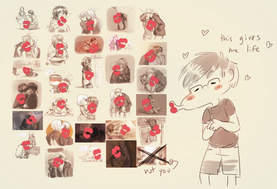 And with that, the month of October ends. It was very nice to, for once, complete a challenge! \ o / and getting to draw so many kisses!!!