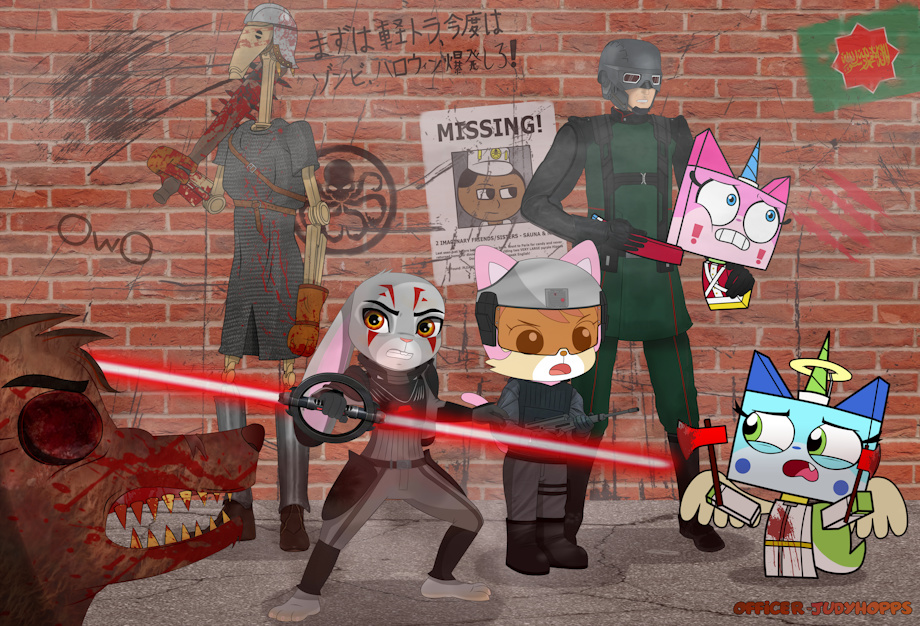 HAPPY (slightly late) Halloween everyone! I had so many Halloween events I had to attend to this year so I took a while to complete this but here it is! Story: Surrounded by the undead on halloween night, the gang faces the danger of being torn apart and eaten by zombies. Fortunately for us, we have some functional weapons.... UNfortunately, zombies could not care less, and their numbers seem to be endless.