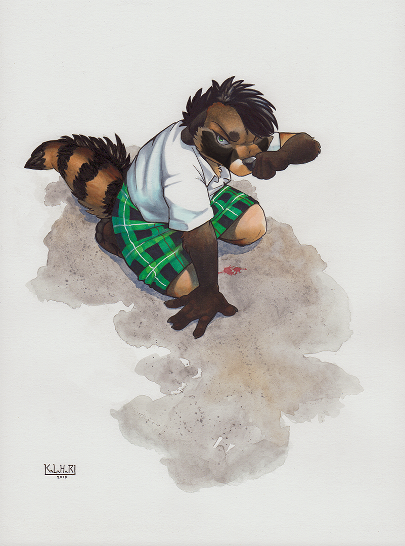 Watercolor, Copic marker, and pen on 9x12″ hotpress board