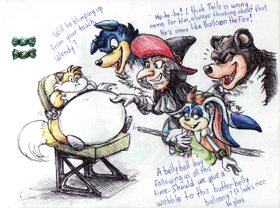 He's so cute as a big fat balloon foxy! <3 This is amazing. I'd LOVE to see you draw more blimpy stuff with Tails like this. :)