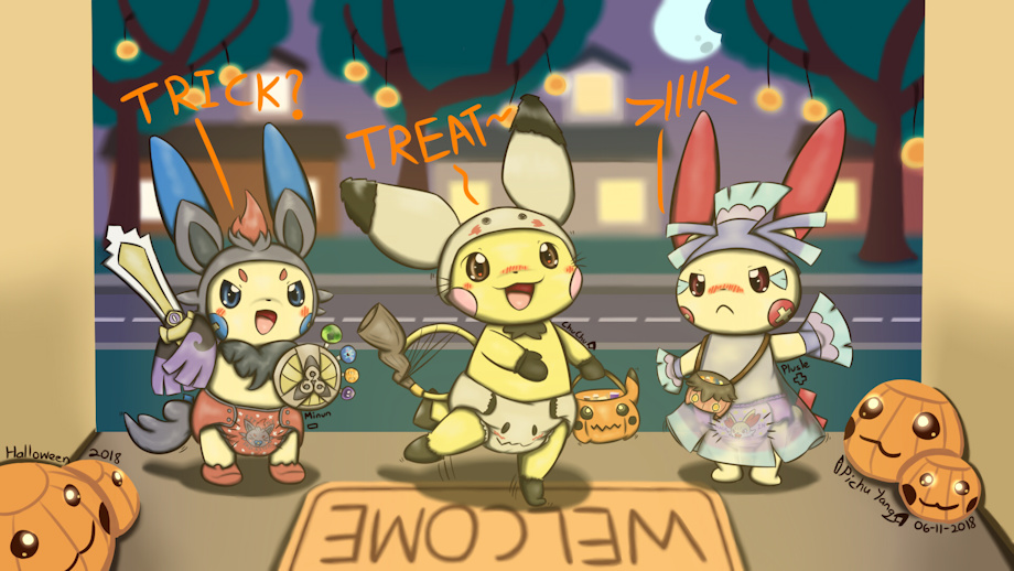 Sorry for finishing late :X ChuChu and his neighbor siblings are going to get treats with their super cute costume! But seems like ChuChu hit a wrong door :P Or maybe a lucky one? (Pls watch 2nd pic) Wanted to draw another scene where Gizamimi change ChuChu's diaper >///< But guess not already :X Unless your guys wanted to... ...