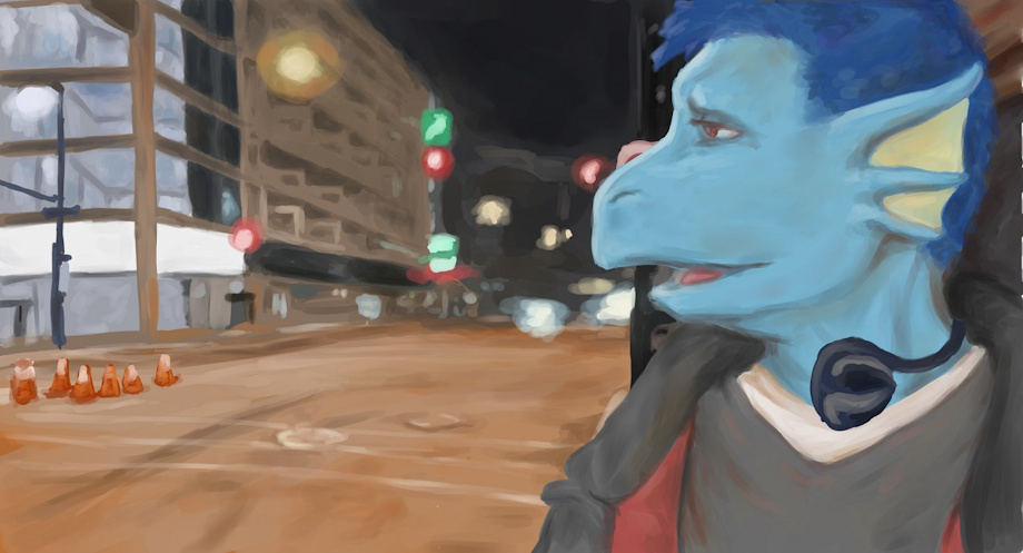 Grabbed a screen cap from a little video xandertheblue posted on Tweeter and painted it up. Thought it had a nice composition and would be good practice for background scenery and nighttime lighting.
