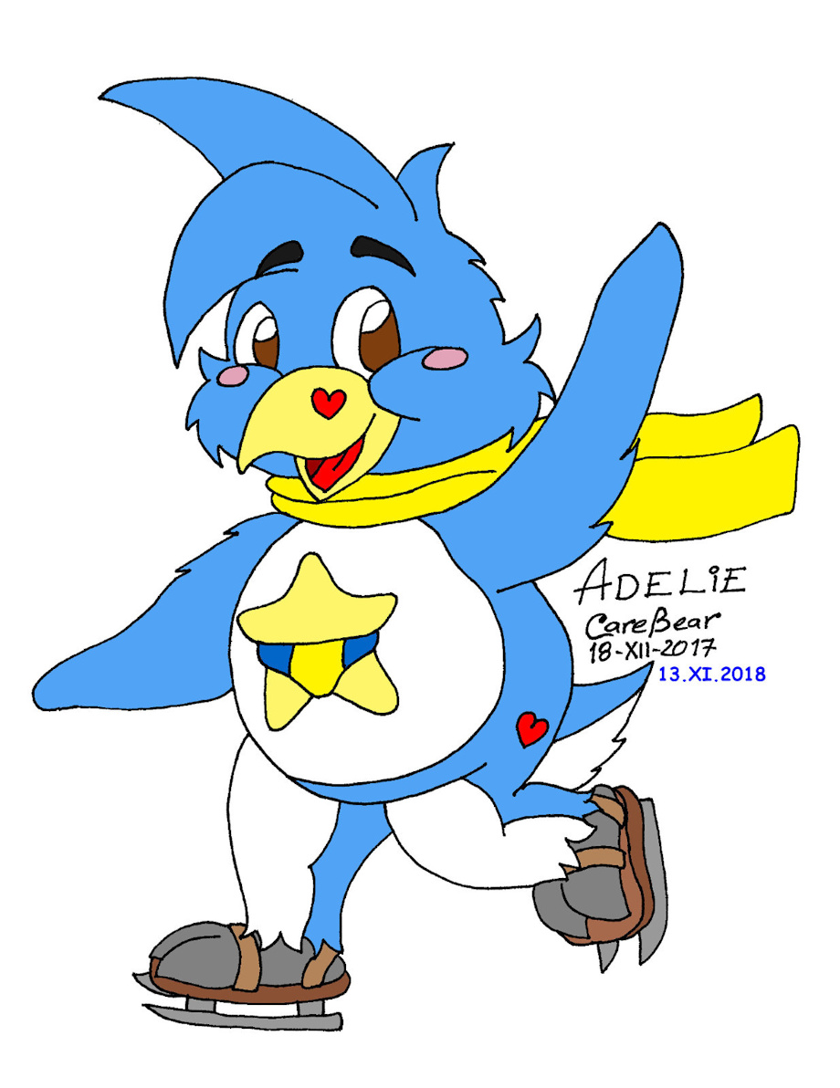 A silly gift pic I did for :iconnakayan: his OC Adelie the cute blue penguin as a Care Bear Cousin, it was nice to draw him ^__^