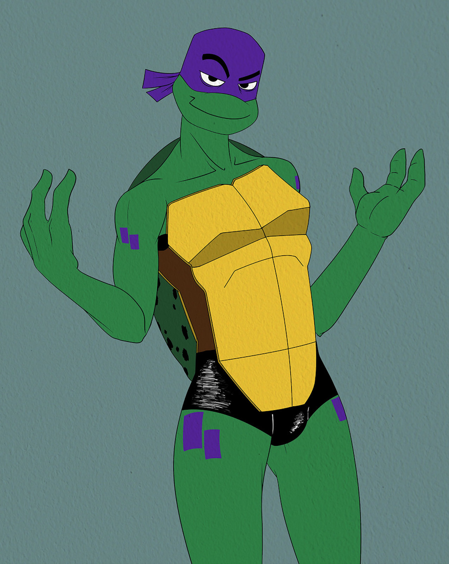 Picture based on a joke from tumblr about Donatello wearing a "are you nasty" booty shorts and or tong.