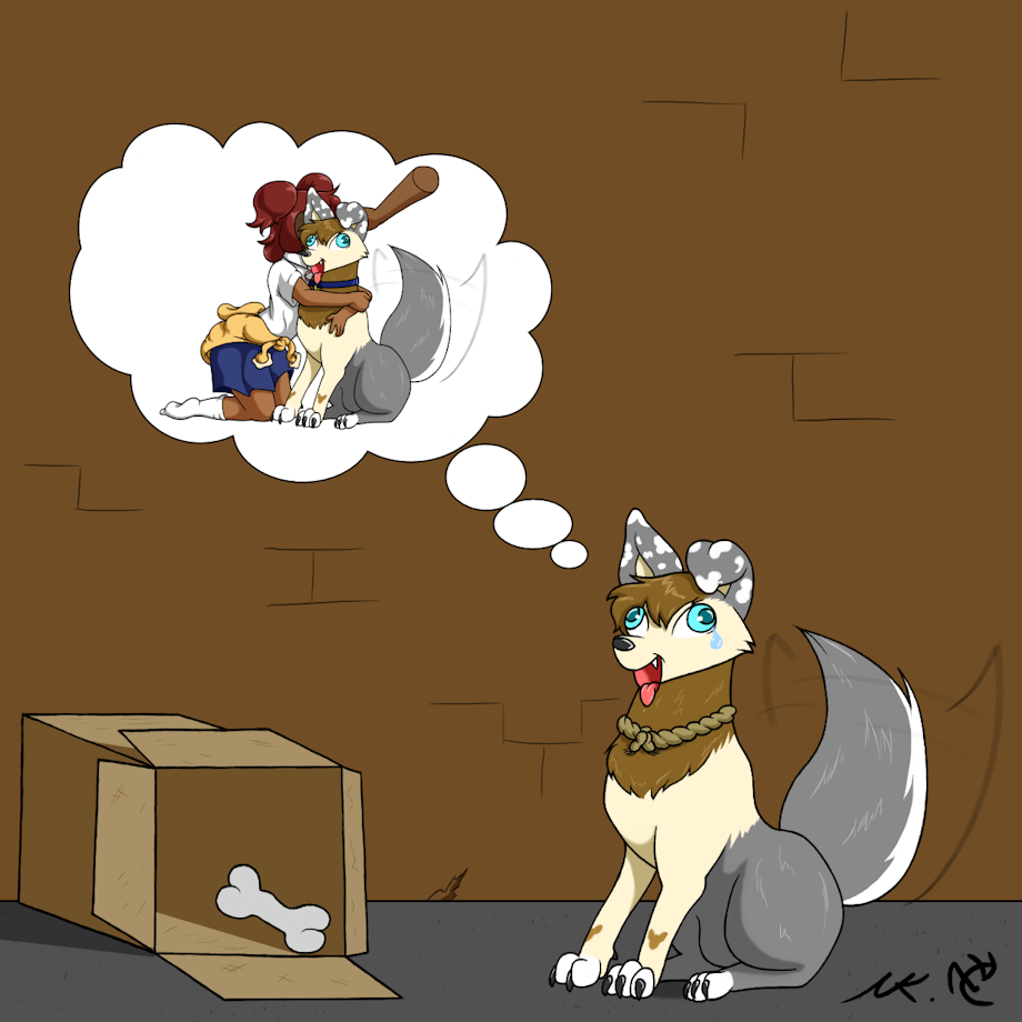 Oh you silly mutt~ You are only fooling yourself if you think life will allow a stray mongrel like yourself any bit of happy~ You delude yourself into thinking that you will ever find that love you have been searching for, ever since you were a small pup. You should just face the undeniable facts~ That this dank narrow alleyway will forever be your one true home~ That this is were you belong~ Next to the forgotten trash that everyone leaves behind an cares not for. Thou, something tells me you already know this harsh cold fact. That no matter how hard you try to escape into your absurd fantasies~ Reality will never let you forget who an what you are~ not even in your dreams~