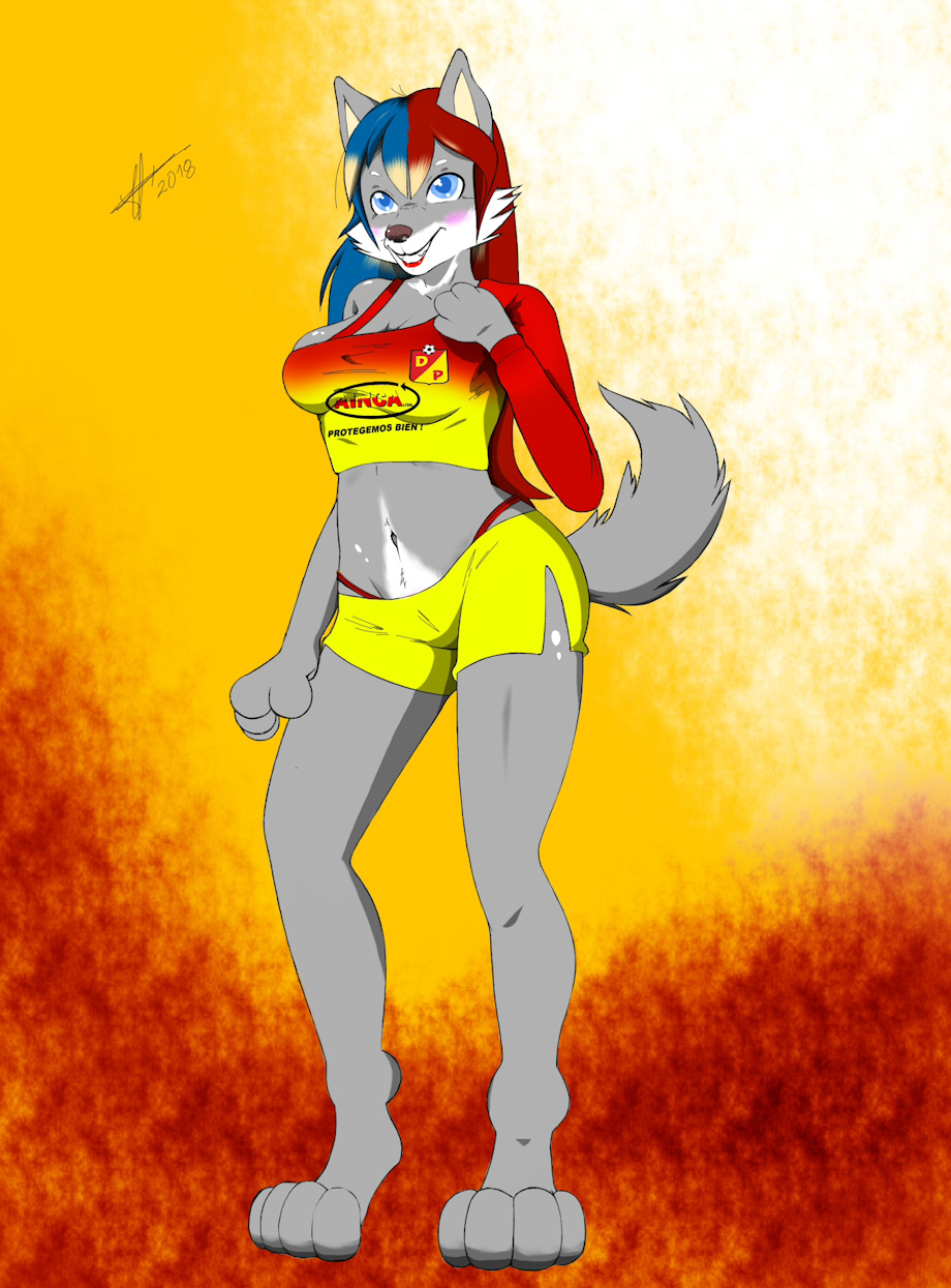 the pet of the Deportivo Pereira soccer team, is a male wolf, but i do a gender bender and here you see, sexy and gorgeaus i guess. i do this with all the soccer team pets so may you'll see al them soon...