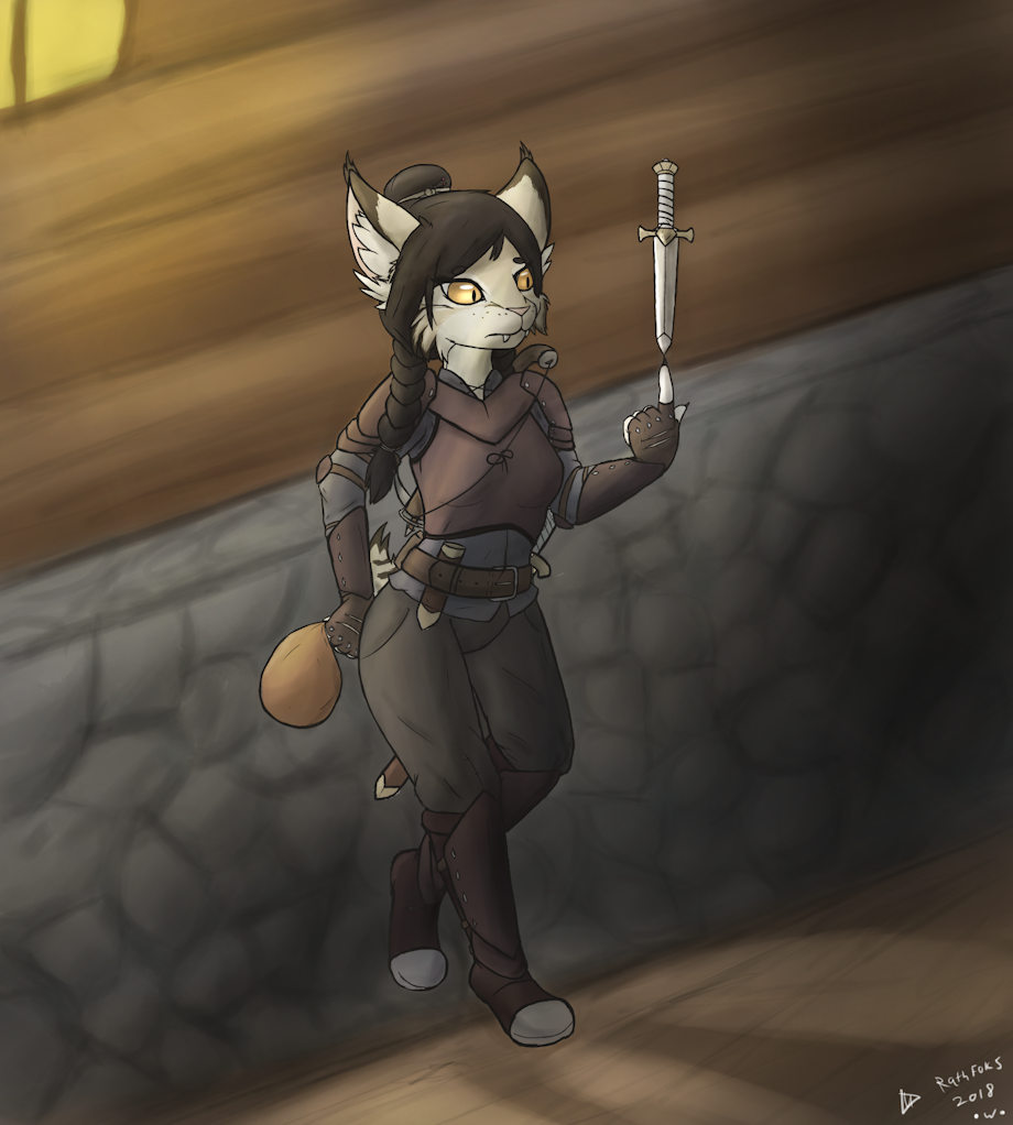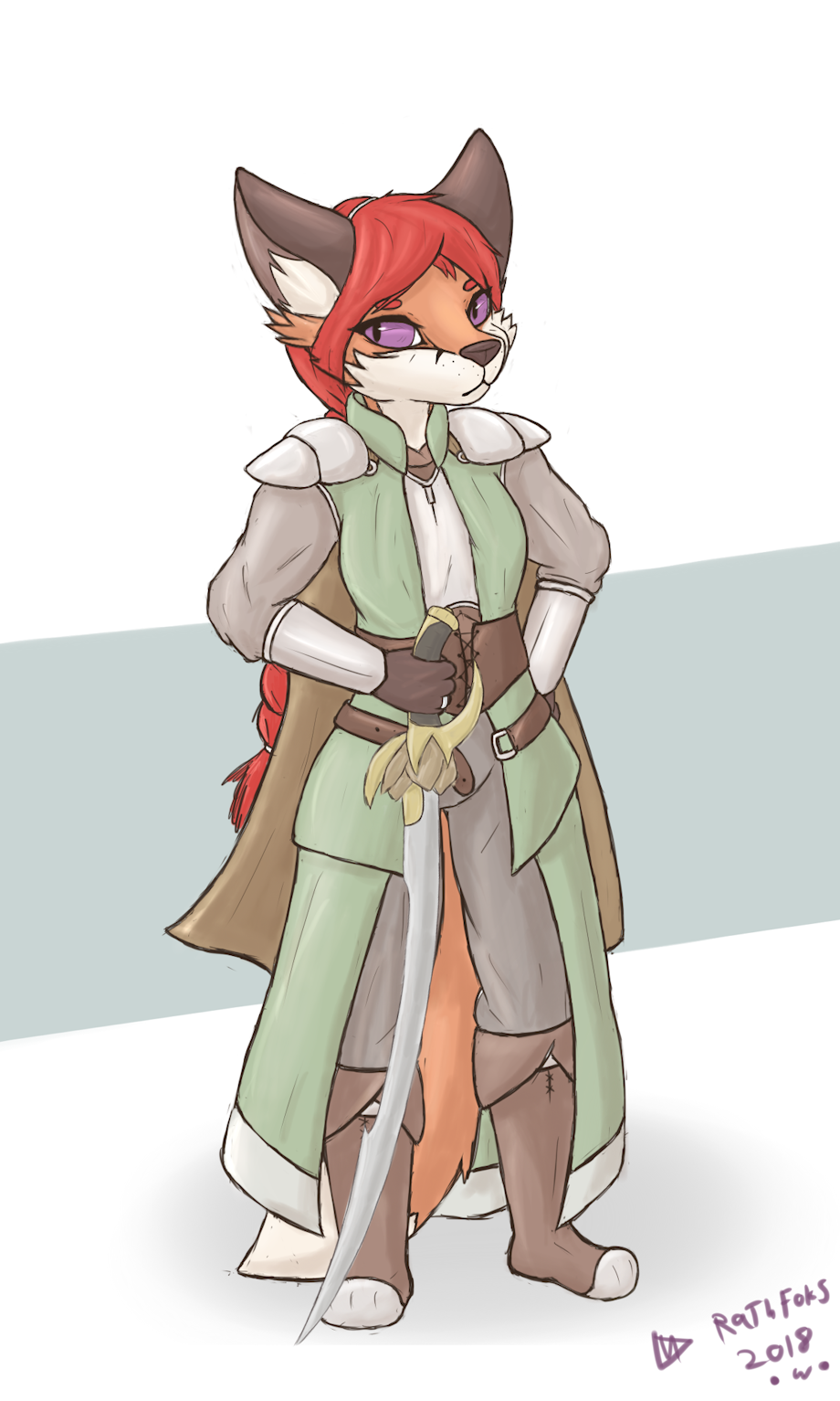 Woodsman turned high ranking militant turned retiree after learning her daughter still lives. She also has a neat sword that is supposed to resemble a rose with petals for the handle and guard, the family sword of her late husband, given to her as a gift, much to the distaste of the latter's family ;0