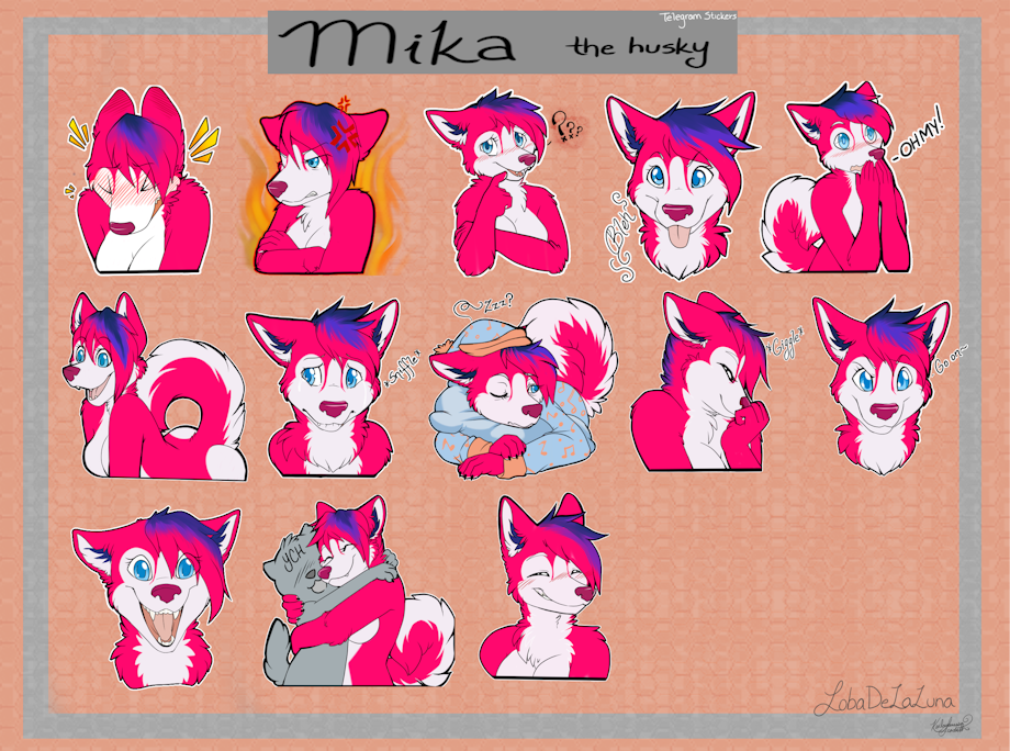 Telegram sticker pack commission for Mika The Husky over on Furry Amino