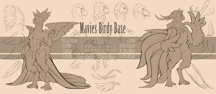 so here ive come to show off my bird adopt pack! its linearts of various bird shapes, beaks, wings, tail feathers etc for folks to make their own bird critters with~ can be uses as reff sheets, or character designs, or to sell as adopts ^^ so if you fancy the base n want to buy it >>>> go to my Gumroad Shop <<<<<
