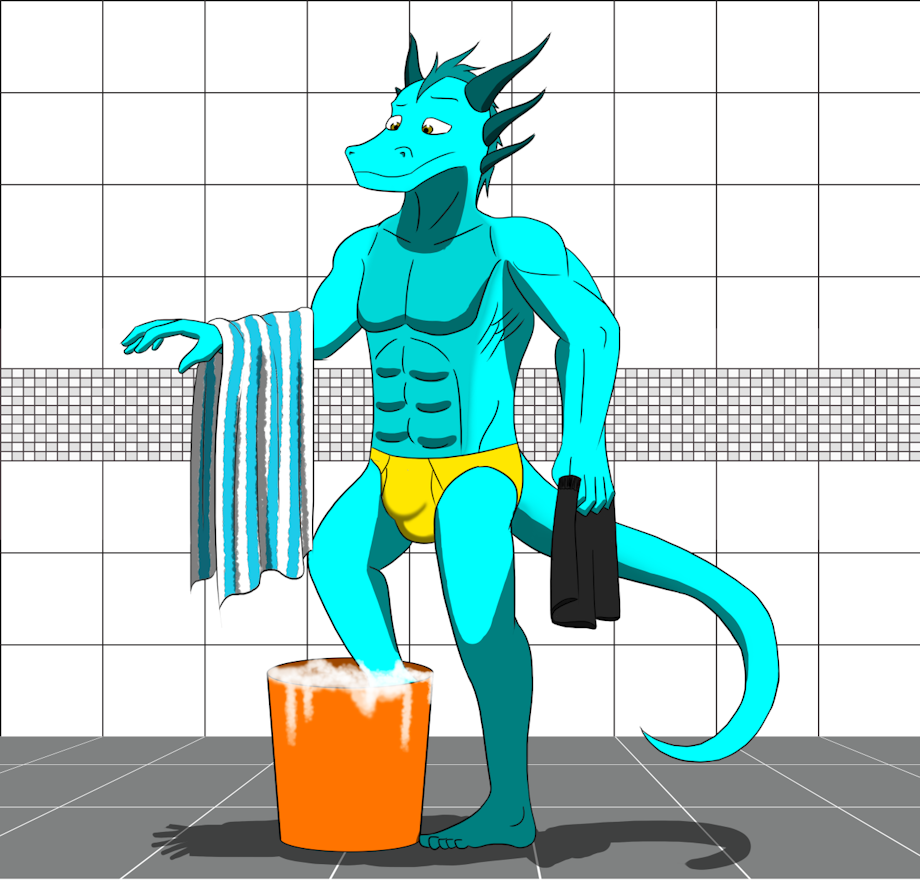 This here, is the way to wash clothing without a washing machine. Dump clothes into a bucket, add powder, fill it up and rinse. It’s not totally effective though. But it's a good excuse to walk in and out the toilet in undies
