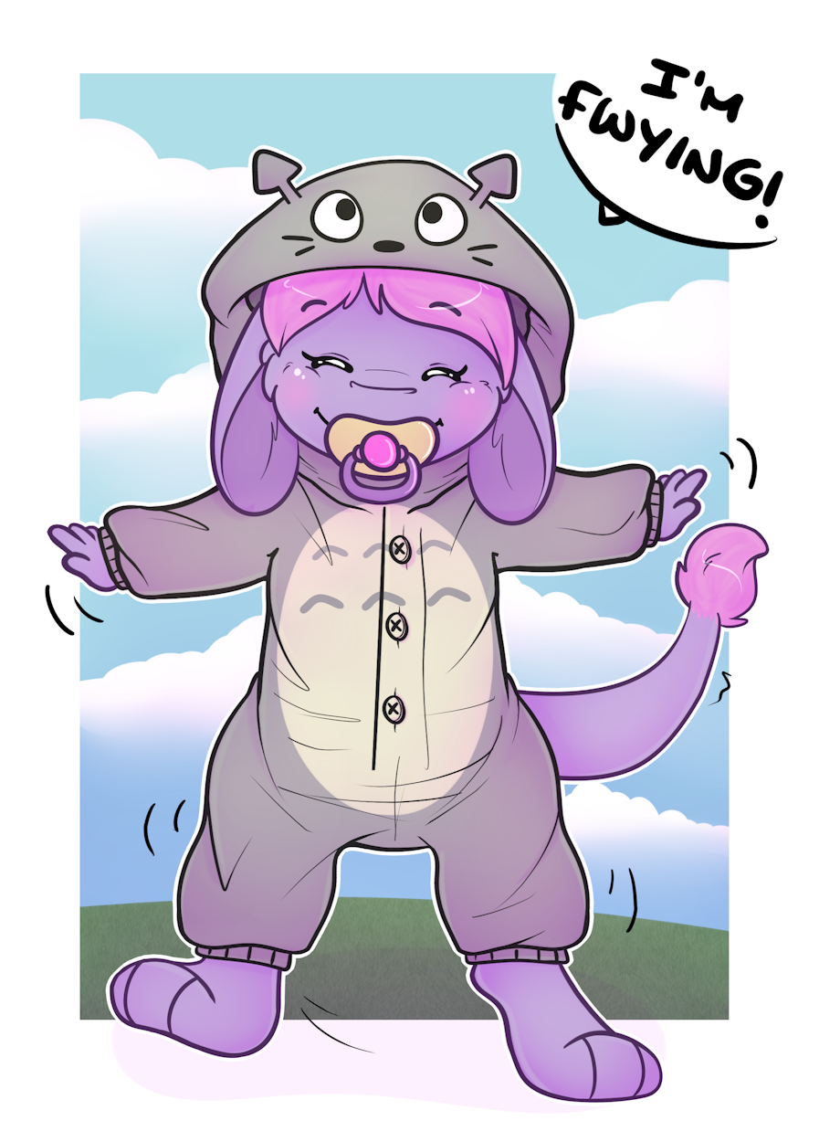 Vee is a kind of a fluffy dragon and she does not have wings but that doesn't keep her from 'flying' around