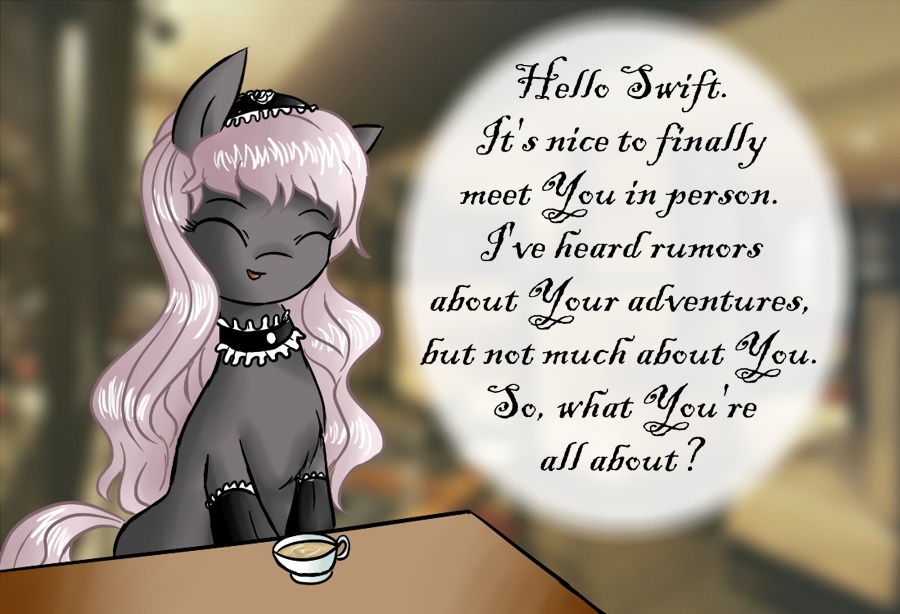 I arrived at the tea shop, a little nervous. I’ve heard about Swift being a nice and modest pony, but I have no idea where his curiosity and inquisitiveness might lead to.