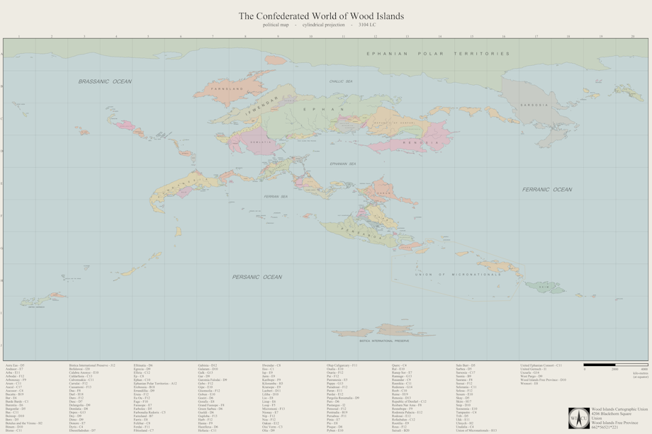 Because I am thoroughly ridiculous, I made an even more intricately-detailed version of my map of Wood Islands, which I have printed and framed on my wall. The original monster picture is 18,000 pixels across! You get to see it here, though, in a more manageable size.
