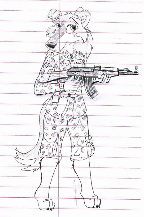 Just a sketch of a collie with an AK-47.