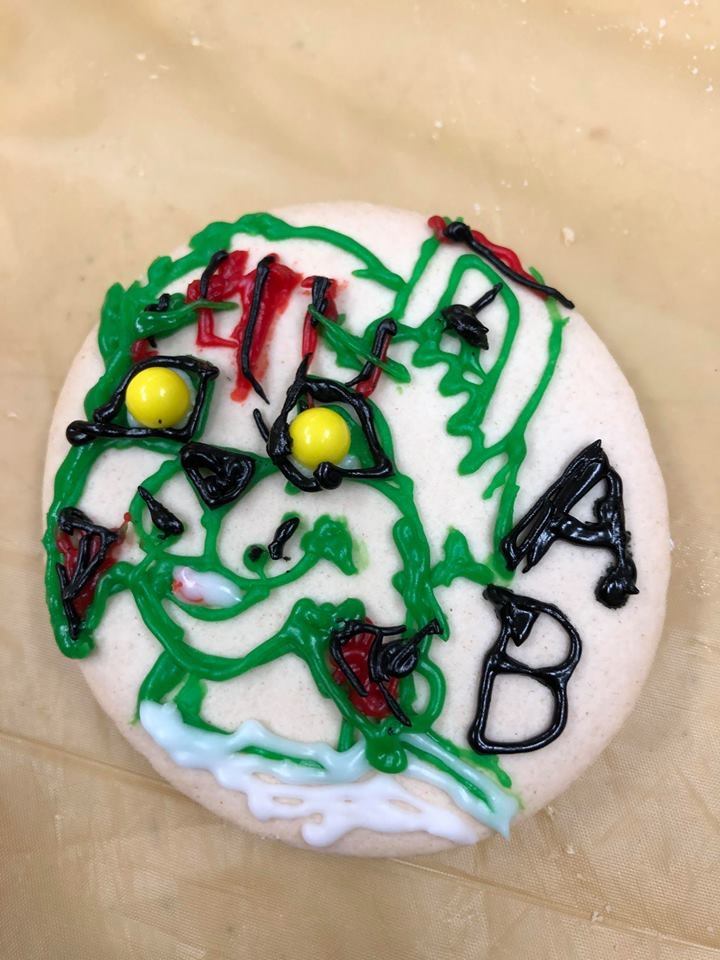 Hectic Christmas dinner at work today, and they had the "decorate your own cookie" kits. So I made Aiden, my Lynx boy, on a cookie, lol.