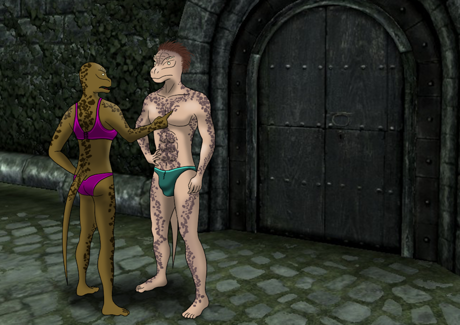 “Come now, I don’t have the septim for fine tunic, of course our clothes were stolen goods as well!”