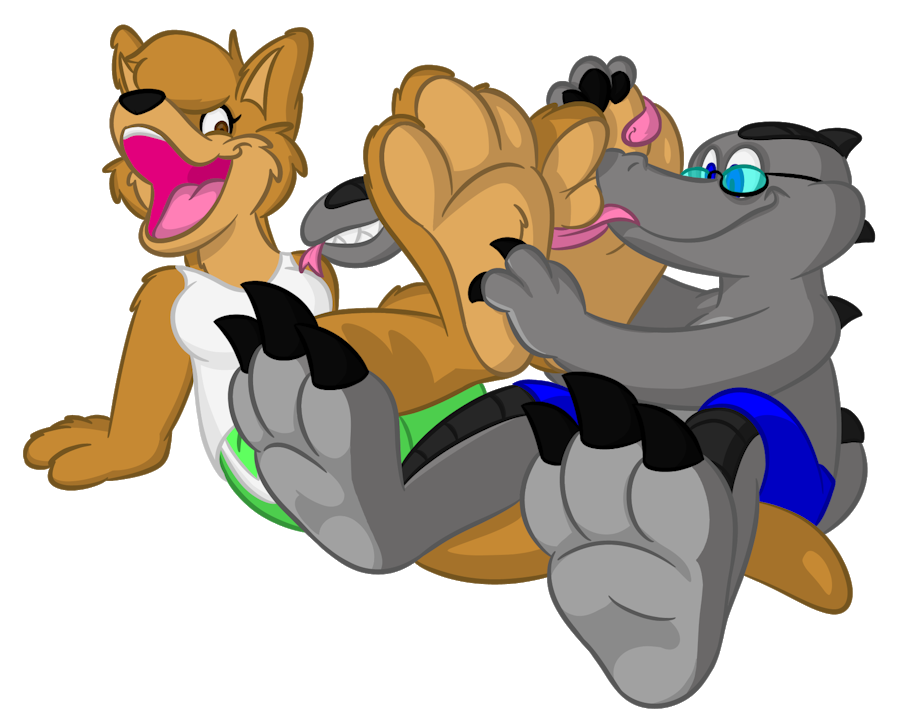 a commission from K-o-R-o-M of his character Zotty licking daisy's paws