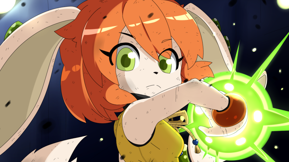 An anime screenshot for Milla Basset, this is what happen if you mess with the puppy and hurting her friends.