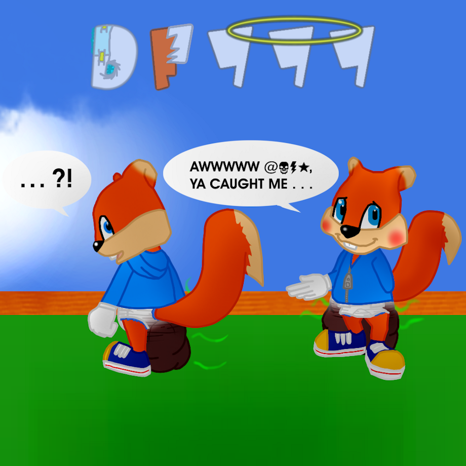 Here's Conker DIAPIFIED! :3 A diapered squirrel.