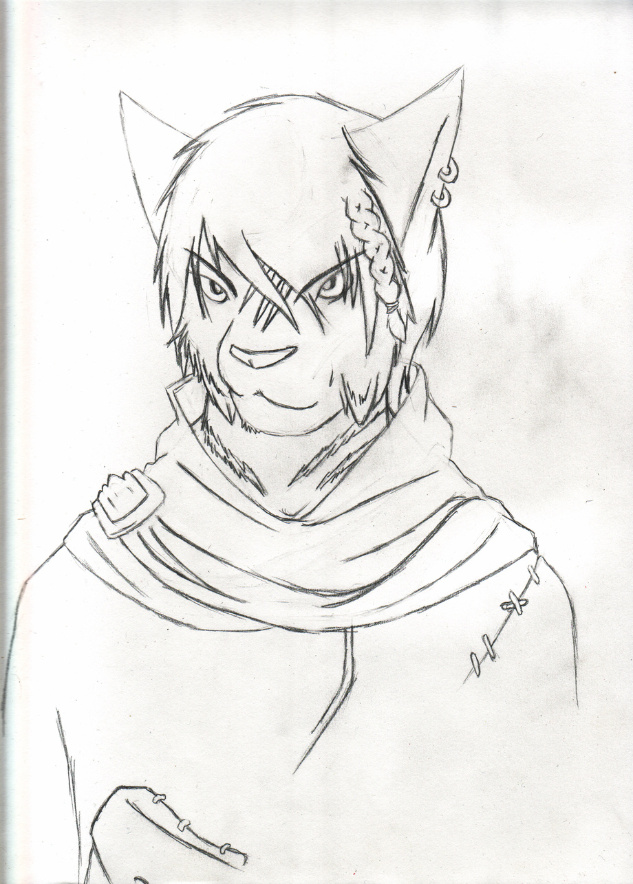 Anyway i plan to color this picture. I love the way he looks, but its the warpaint and color that make him so sexy. Also he's wearing a belted tunic, as best as i can draw it in a small space. After i color this i will do a full body picture. I know his hairstyle isn't quite "right" but i hated all the other ones so this is how i imagine him.