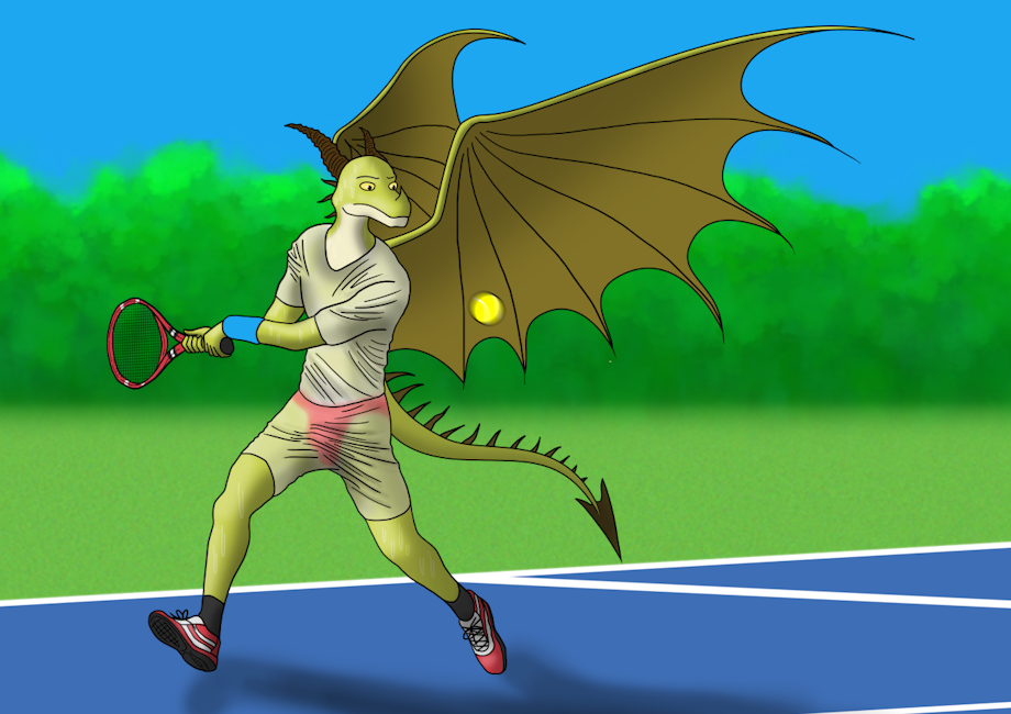 Seems he picked the wrong match and day to wear white as his sweat has made his entire outfit translucent. Nice red briefs, Sharpshot, are they good luck underwear?