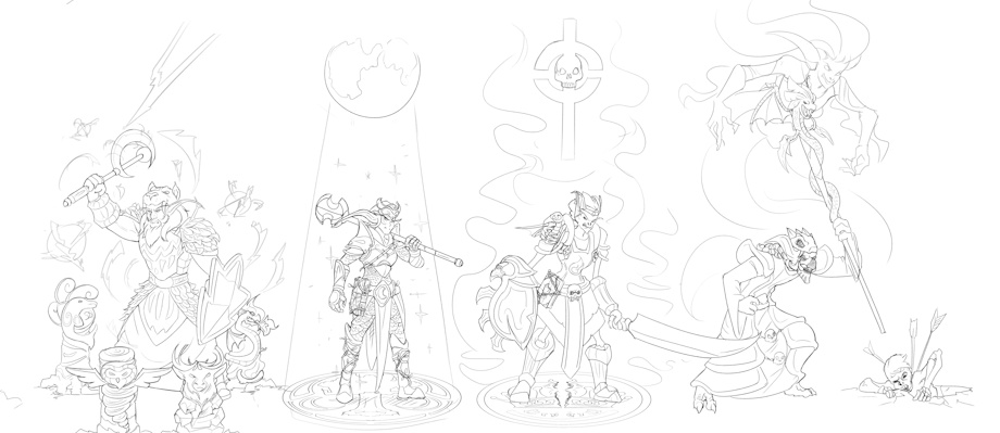 This commission has been long time coming. From Left to right: Flada the Gremlin Rogue, Lanzix the Gremlin Geomancer (among other things) , and Lally the Leprechaun Bard