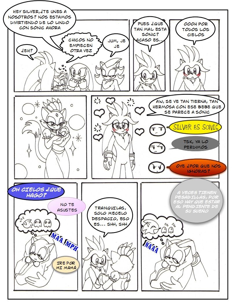 Invitaron a Silver a unirse al juego pero se quedo prendado del aura materna que desprendia Blaze al cargar a Sonic.