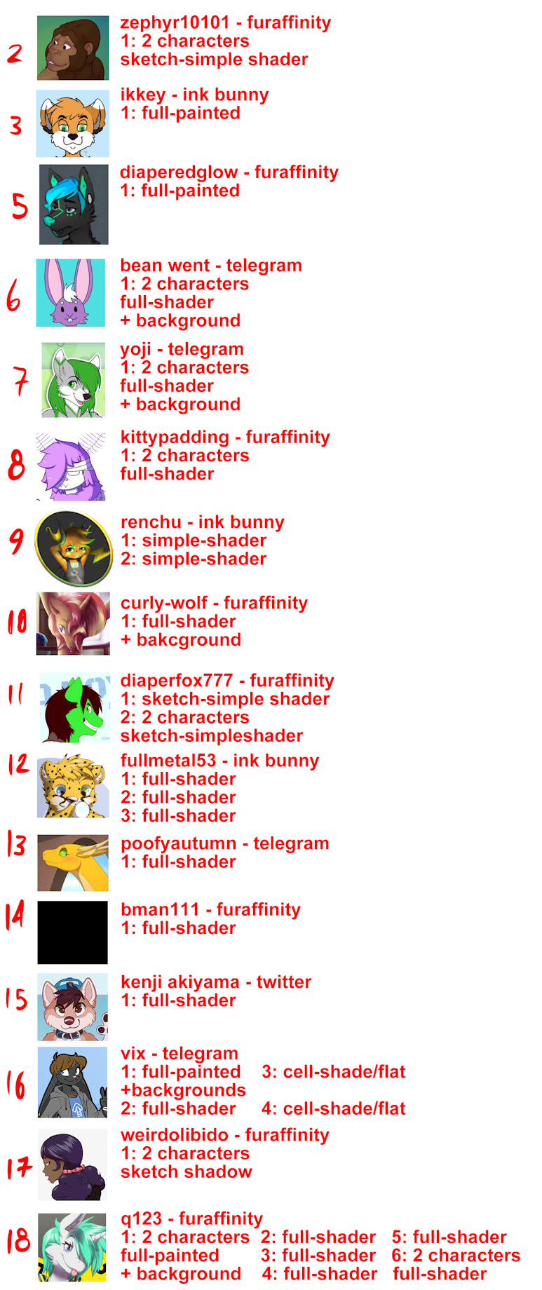 if you wonder why I miss 2 numbers, that's because they correspond to 2 anonymous commissions, hehe please do not ask me who are nwn.