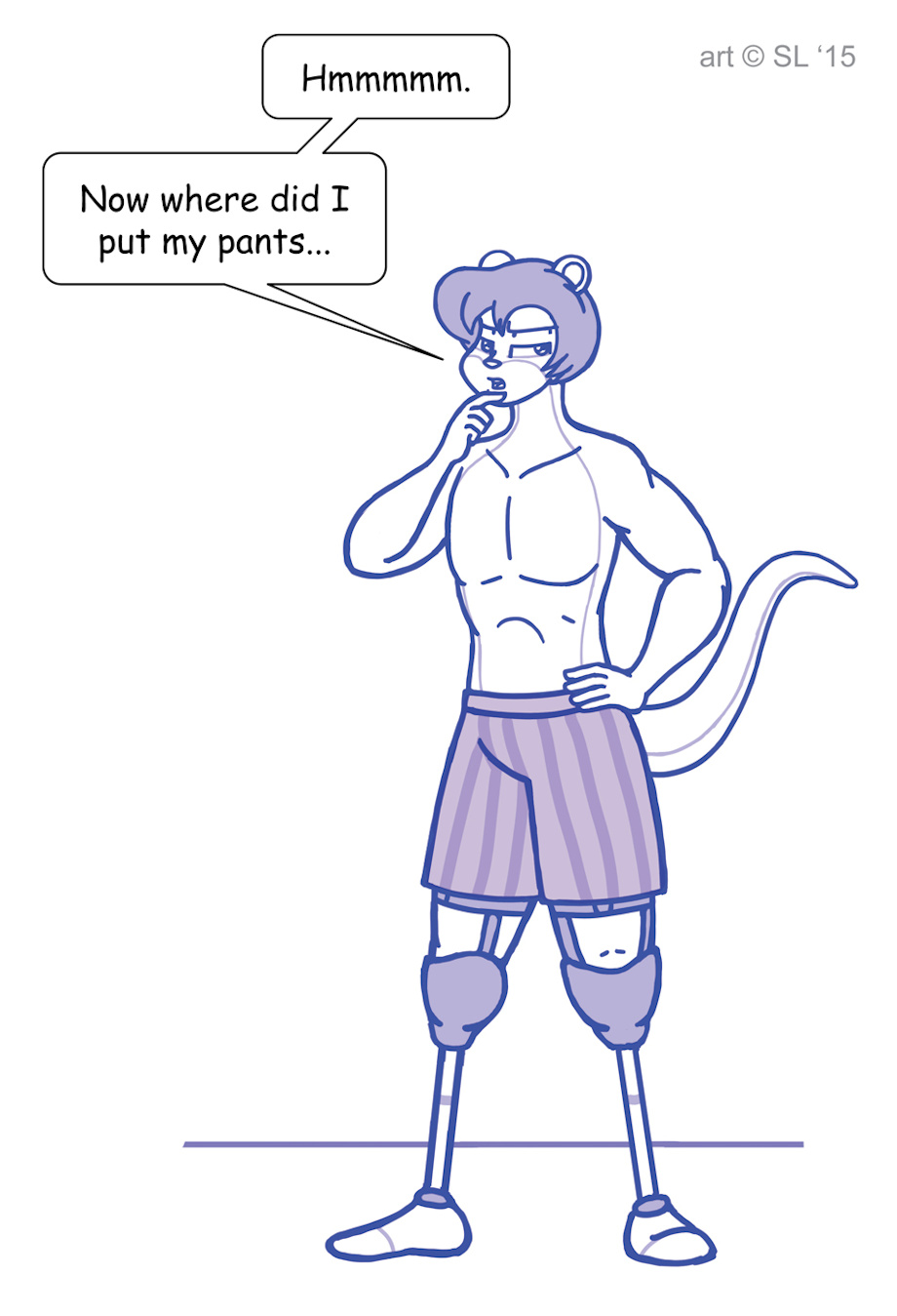 And on an artistic note, for this sketch, I mostly wanted to try and figure out how to set up his prosthetic legs (since as mentioned before in previous submissions, he's an amputee).