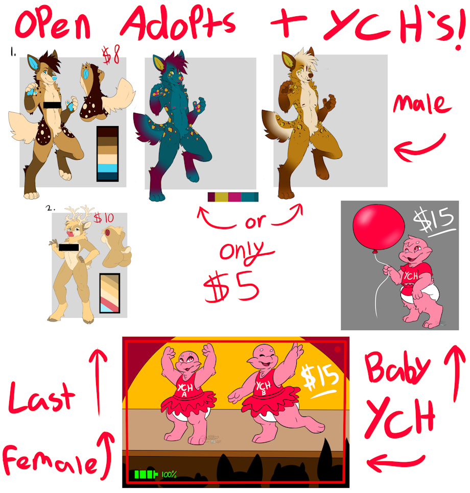 These ych's and adoptables are still open! come and get em <3 Prices all 15$ and under!