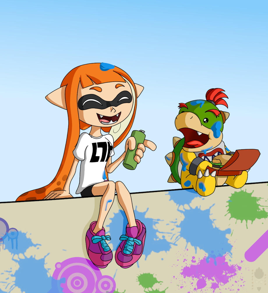 Junior makes a new friend from Inkopolis after showing off his talents with a paint brush.