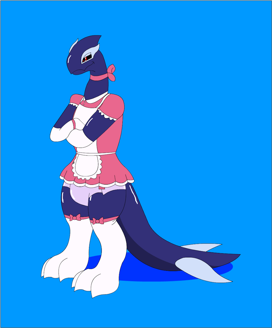 Daniel, more commonly shortened to Dan or Dani, is a latex/pooltoy Shadow Lugia, who just happens to go against his Pokemon species' reputation and is actually quite friendly and even cutesy. He runs a maid-cafe-style restaurant... with a slight twist; that of it also being sissyish and babyfur themed... Sound fun? Well: beware, because he does still have a bit of that shadow lugia cruel streak: just in his case, Dan loves to make others blush and squirm, and his favorites are new employees, especially if they've been "volunteered". Best go along with it: or else he'll use some of his psychic power to get you to do it anyway, and he has fine enough control to be able to leave your mind conscious and aware in your puppeteer-ed body... so I guess he's "whimsical evil".