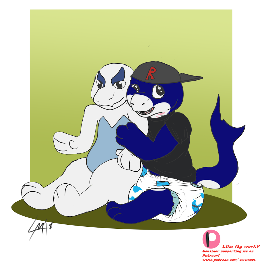 Mmph: shush; so even evil sharks like to cuddle their favorite pokemon...