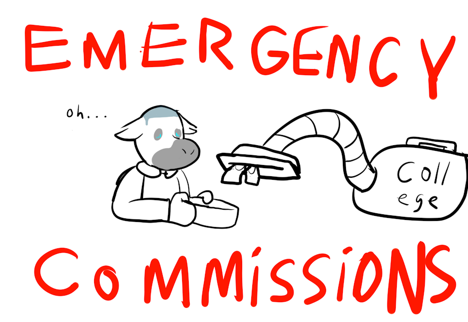 my prices are the same as on there: $10 sketch/20$ flat ________________ +$5 per character +$5 for shading +$10 for background +$10 for a "crowd of people" +$15 for a more detailed "crowd of people" +$15 to make it a refsheet +$30 for anything i'm barely comfortable with