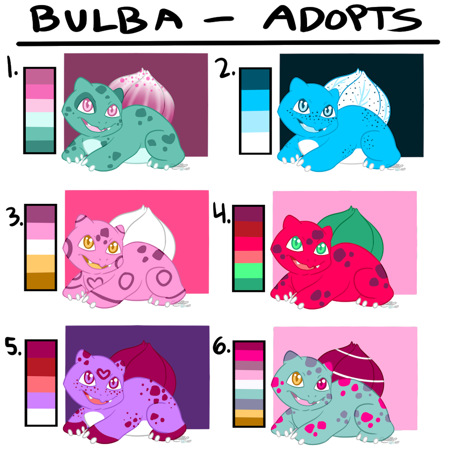 Each baby is 10$ (except for number 2) , and apon purchase you will get a soloed out pic of your bulba. A gender can be added to there mini ref at request.