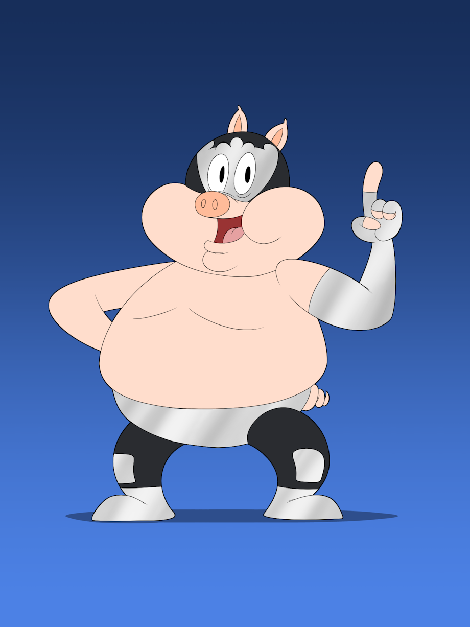 Well, given that it's the year of the pig for 2019, I thought it'd be appropriate to draw the "Wabbit" or "New Looney Tunes" style of Porky Pig dressed as the legendary "Brazo the Plata", known affectionately in WWE as "Super Porky", once more.