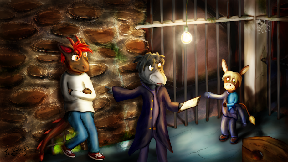 Another Scene from Young Heroes. Jacob is rescued from his prison cell by members of the Dragon Guard. He's putting on the restraining suit while Damien "Drax" and Morrigan are giving final instructions to the rest of the team.