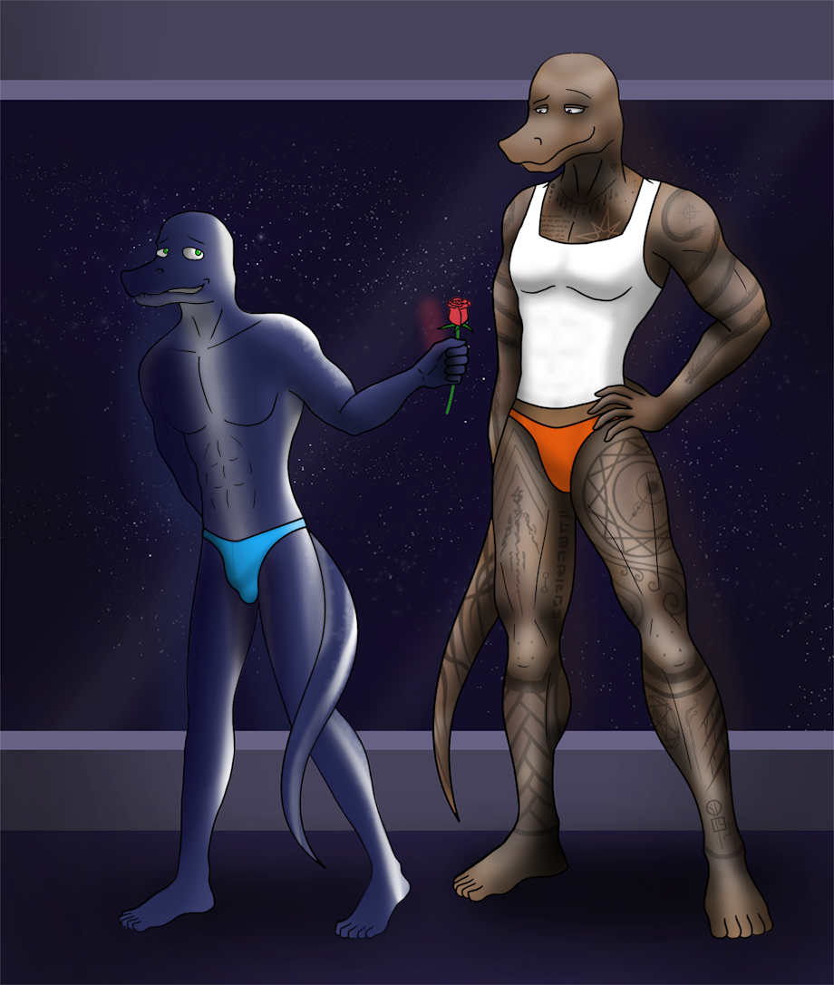 (These are Snakari, and females don’t have boobs actually. So here’s something for Valentine’s Day, a gift for my friend of his OCs)