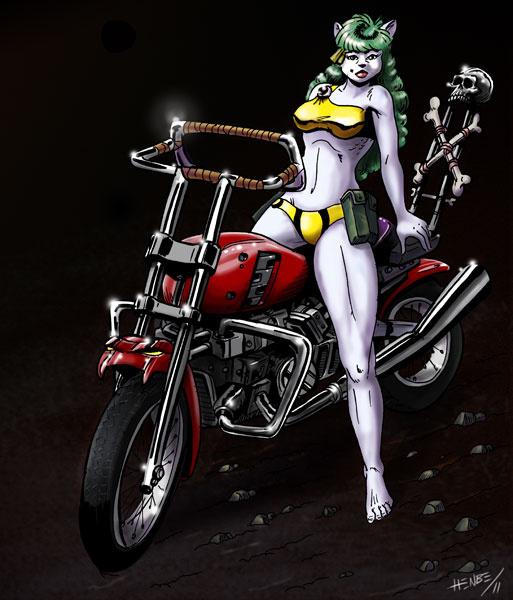 For a quick summary, Kalip is a mutant in my comic :"The amazons of the toxic pelt" and she roams the land searching for the last men on Earth. More later....Maybe.
