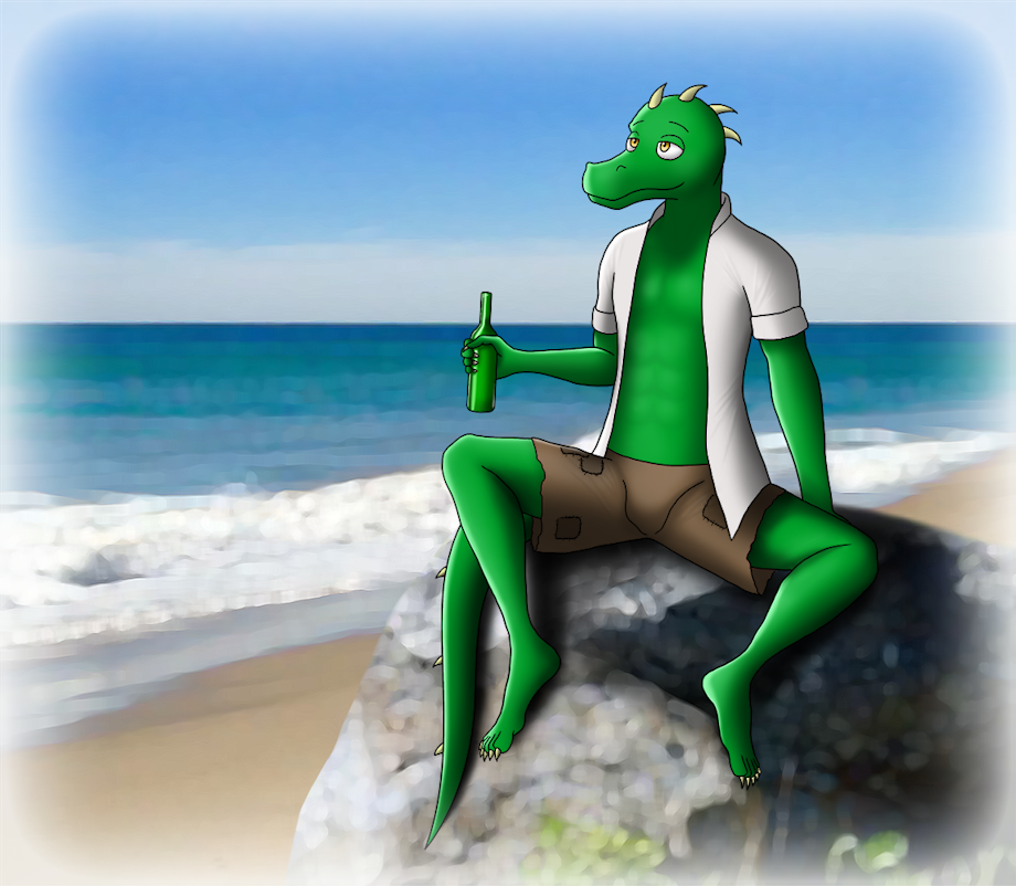 Commission work done for AYBfim on FA, of his kobold on the beach, enjoying a nice beer. Summer sun, cooling breezes, with a cold one in your hand, what could be better than this nice holiday paradise?