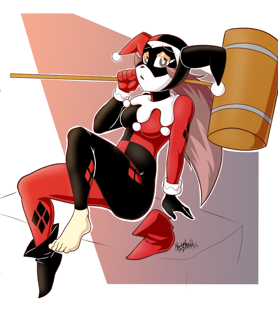 She got an nice looking foot there. She really loves dressing up a Harly Quinn.