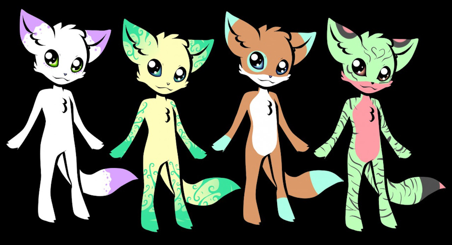 4 random furries that are adoptable. they don't have species, names, genders, or anything, just patterns really.