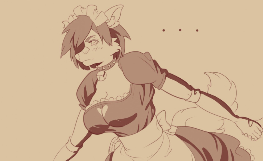 Just a sketch I made of my husband's Maid RPG character. Nothing too fancy, but I tried a new style of hard shading, and I think I like it!