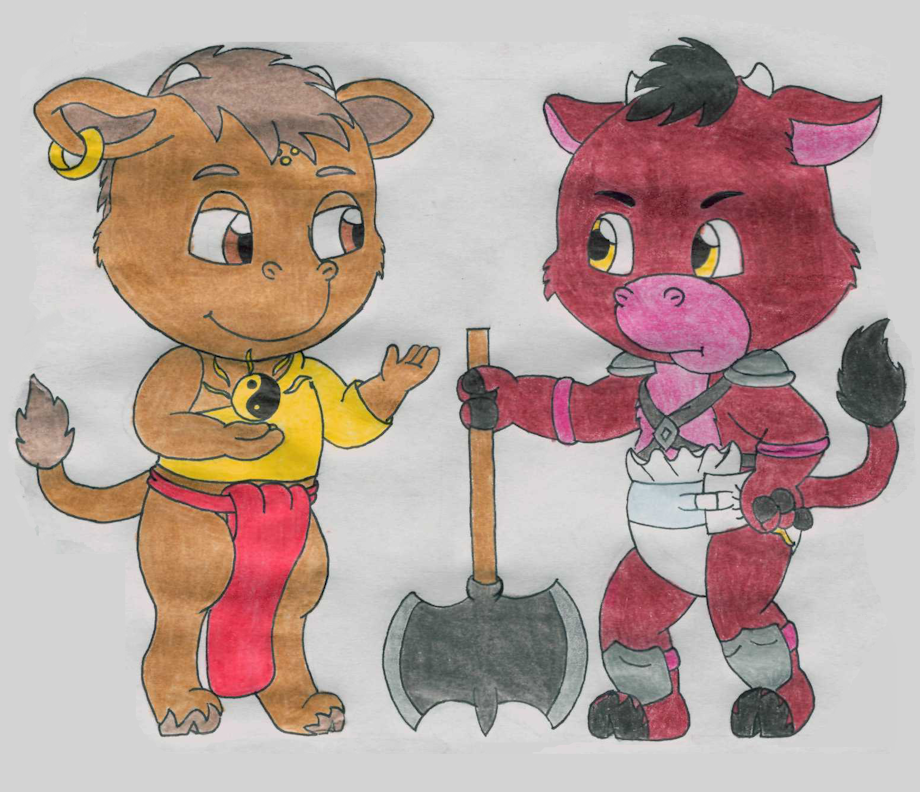 Had this for a while before I finally got to inking and coloring all of it. But here we have my Tibetan Tiger character Tiaowen, his sister Shi, and his friend Tenzin meeting the Mythies from