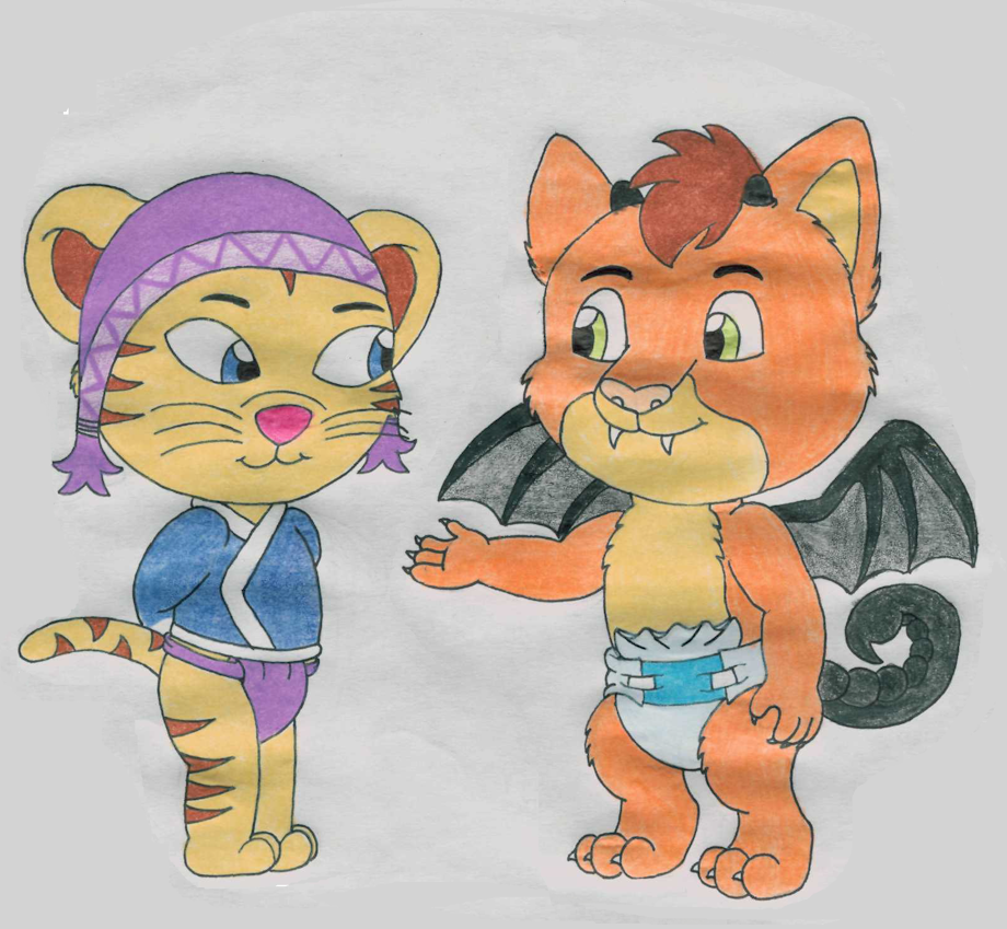 Had this for a while before I finally got to inking and coloring all of it. But here we have my Tibetan Tiger character Tiaowen, his sister Shi, and his friend Tenzin meeting the Mythies from