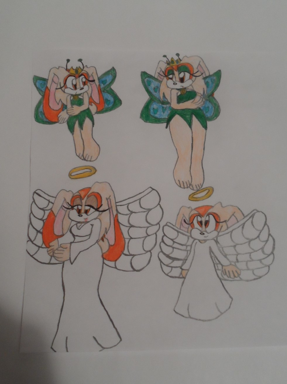 Just doodles of Cream both in her canon age and older age as butterfly fairies or fairy princesses and angels.