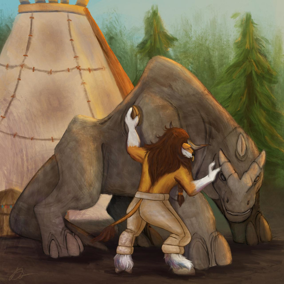 Sungore giving his Sunwalker a nice good clean after a hardy adventure!